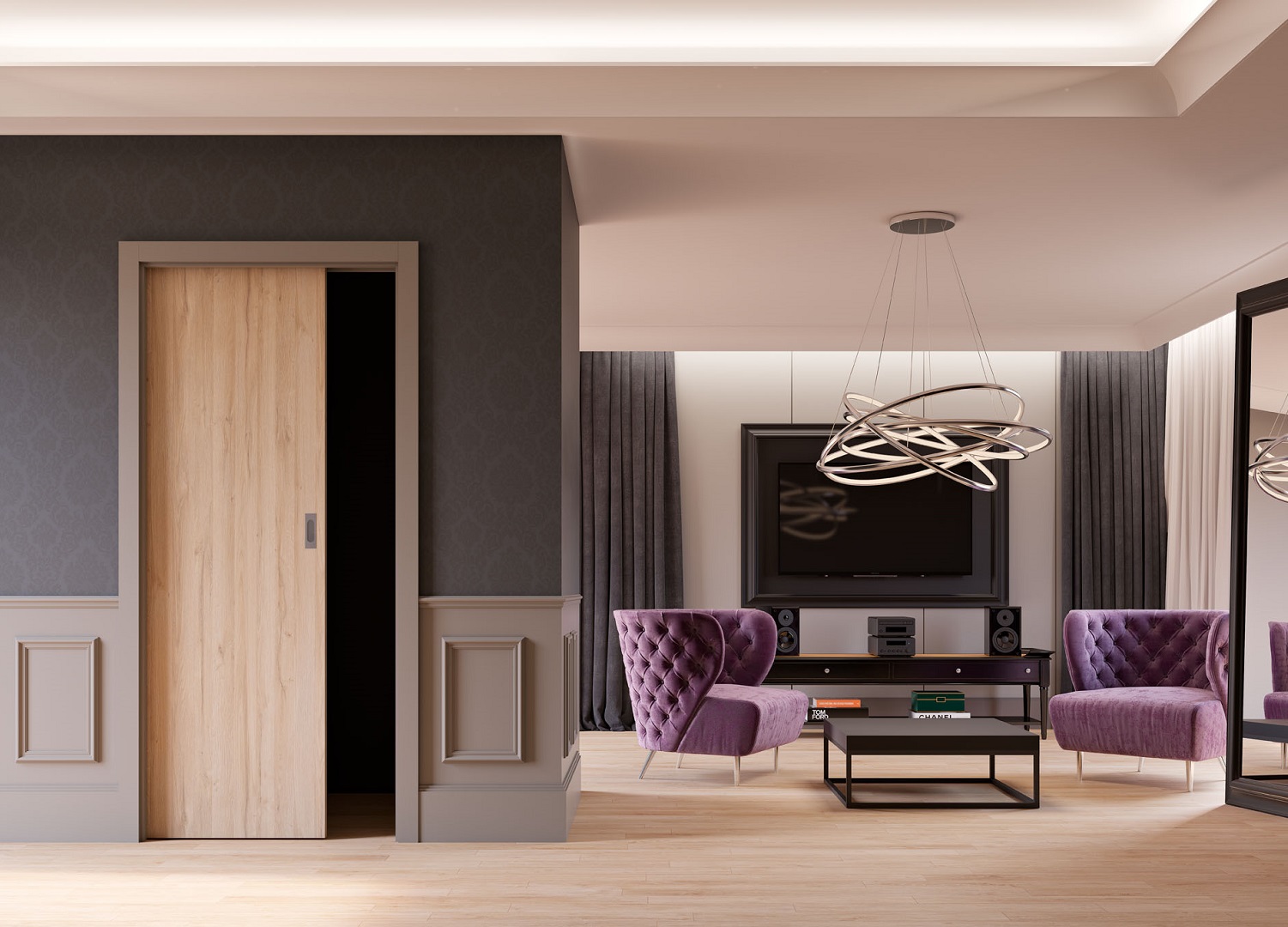 Drzwi przesuwne chowane w ścianie są idealnym rozwiązaniem w przypadku niewielkich przestrzeni, zapewniającym przestronność oraz oszczędność miejsca. Drzwi te po otwarciu są niewidoczne, dzięki czemu idealnie wpisują się w charakter aranżacji nowoczesnych i minimalistycznych.
